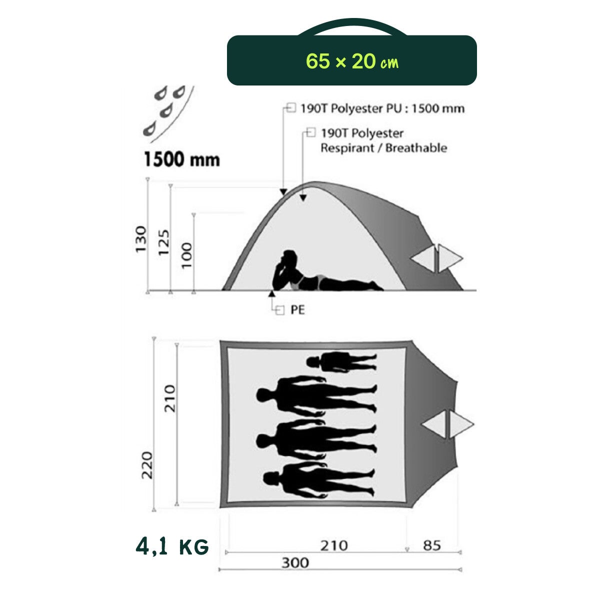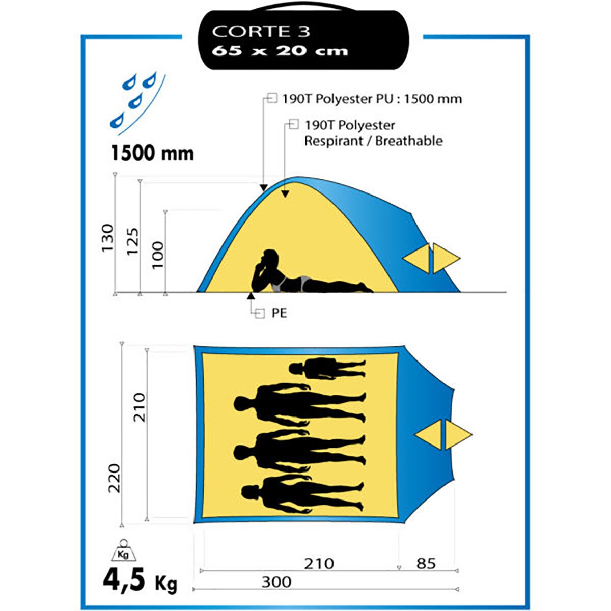 Tente en polyhestère, sous forme de dôme, pour 3 personnes.